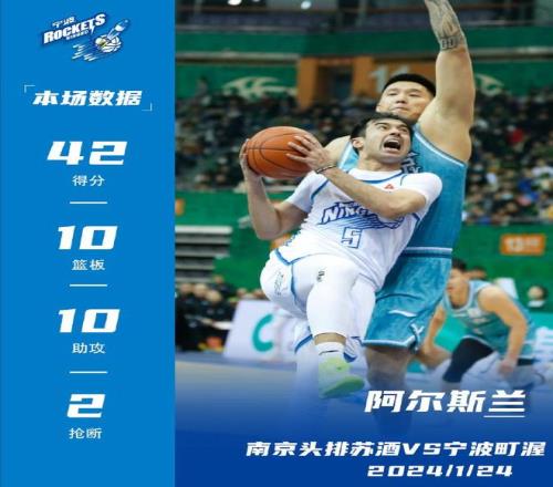 阿尔斯兰,今年29岁,23-24赛季,他在宁波男篮场均出战了31场比赛,场均36.1分钟,可以得到19.8分3.7篮板8.1助攻,投篮命中率41%,三分命中率32.4%,场均可以命中2.5记三分。在对阵南京的比赛中阿尔斯兰拿到42分10篮板10助攻的超级三双,对阵山西拿到33分9篮板12助攻,对阵浙江拿到33分12助攻,对阵北控拿到35分10助攻,这个赛季的阿尔斯兰,小外援一般的打法!国内有多少后卫场均可以拿到19.8分+8.1助攻的数据?当然,阿尔斯兰在宁波男篮有无限的开火权。不管怎么样,阿尔斯兰绝对是可以继续打CBA的。