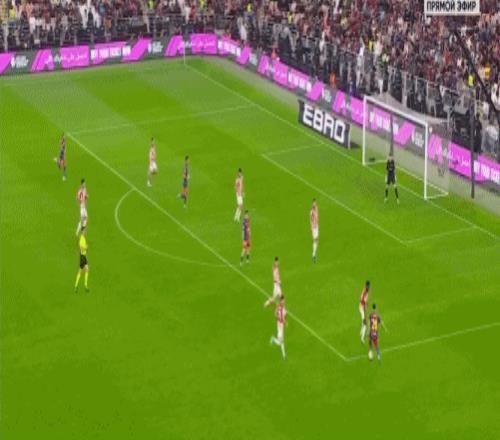 整个上半场比赛,状态不佳的巴斯克雄狮便直接被巴萨打爆了;前20分钟乌奈-西蒙便已经做出了2次扑救。第22分钟,巴尔德吉右侧横传,费尔明似传似射,费兰-托雷斯接球弹射破门,1:0!费兰-托雷斯这赛季已经打进14球,是队内的第一射手。第30分钟,佩德里左侧肋部潇洒摆脱直塞,拉菲尼亚心领神会前插传中,中路无人盯防的费尔明轻松劲射再下一城,2:0!