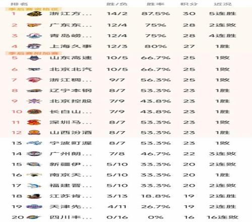 CBA排名一夜大变!广厦第1,广东遭绝杀,山东爆冷输江苏5分